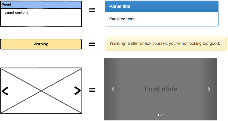 Here's an example of how you might map some Balsamiq controls to Bootstrap components (you could also start with some premade controls you can find by searching "Bootstrap" using search.