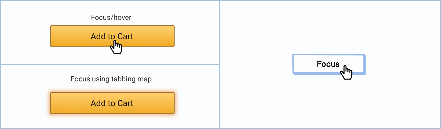 The focus state occurs when you hover over a button or tab to it using the keyboard. This little bit of interactive feedback lets the user know that the button is clickable.