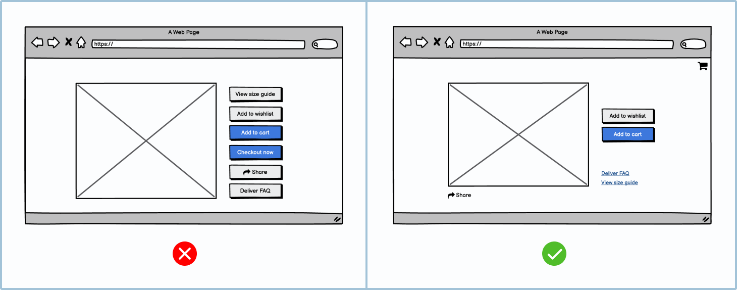 This goes without saying: in UX design, you want to make the user’s journey as easy as possible. You don’t want them to hunt around the screen trying to find a button. The best way to determine where to place buttons is to see how similar platforms do it. For example, most online retail sites have the product image on the left and the buttons on the right.