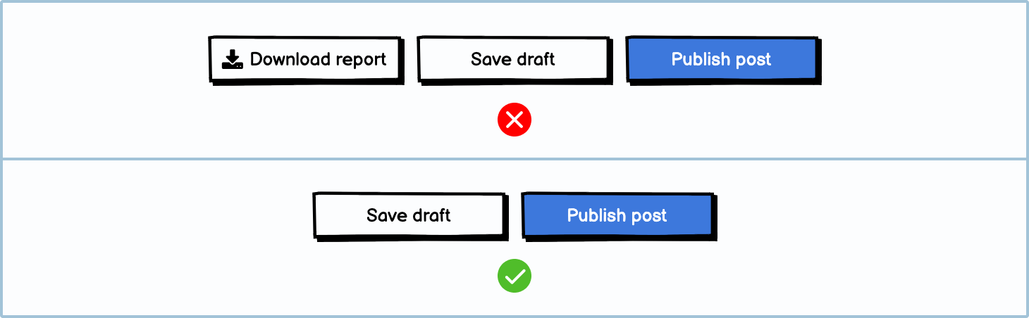 In this section, we will look at the hierarchy of buttons and what they communicate. Button actions are not determined by how they look (although they have a visual language) but rather by the event they trigger.