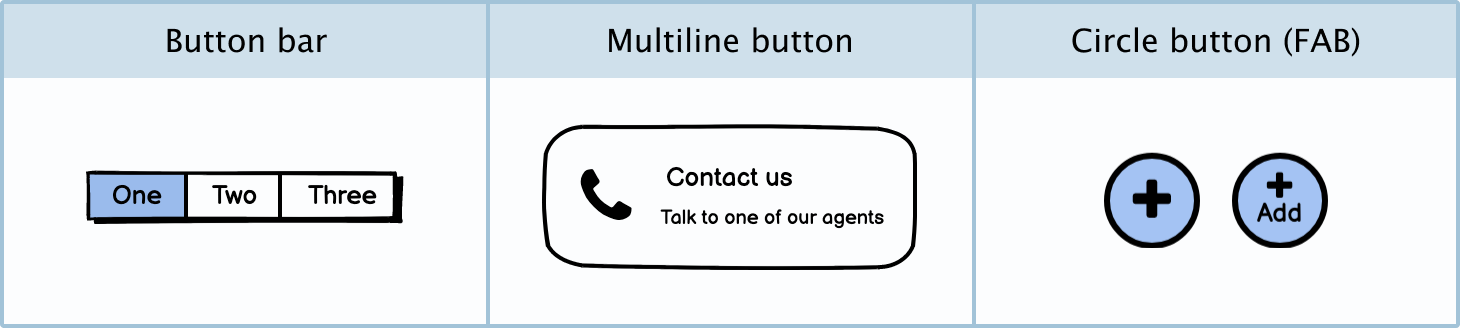 Multiline button: The multiline button is a big button that gives the user a longer description of what will happen when they click it.