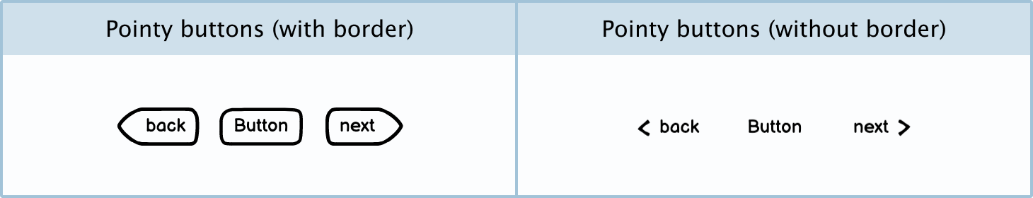 Pointy buttons: Pointy buttons, because of their shape, indicate to the user that they will go forwards or backwards though different pages. You can add or remove the border and change the direction of the arrows from the UI element panel.